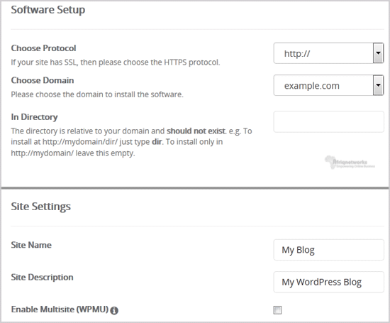 Knowledgebase Categories Backup/Restore 4 Broadband Internet 1 cPanel - Control Panel 24 Databases 11 Dedicated Servers 3 DNS - Nameserver 6 Domain 2 Domain Management 10 Domain Transfer 1 Email 13 FTP 4 Installing a Control Panel 6 Mail Filters & SPAM 8 Mobile 11 New Microwave Upgrade 1 Others 3 Security 10 Softaculous 71 Web Hosting 1 Wordpress 17 Categories Backup/Restore (4) Broadband Internet (1) cPanel - Control Panel (24) Databases (11) Dedicated Servers (3) DNS - Nameserver (6) Domain (2) Domain Management (10) Domain Transfer (1) Email (13) FTP (4) Installing a Control Panel (6) Mail Filters & SPAM (8) Mobile (11) New Microwave Upgrade (1) Others (3) Security (10) Softaculous (71) Web Hosting (1) Wordpress (17) How to Install Wordpress via Softaculous in cPanel? 1. Log into your cPanel account. 2. In the "Software" section, click on "Softaculous App Installer" Icon.3. cPanel will redirect you to the Softaculous Panel.4. On the left side of your screen you should locate the "Blogs" category. Click on it and then click on the "WordPress" link that will appear.5. Click on the "Install" button6. Fill the necessary field under the "Software Setup" field: Choose Protocol: You can leave this as it is.Choose Domain: If you don't have multiple domains, leave this as it is. In Directory: If you want to install this in a directory, for example example.com/directory, enter the directory name. Otherwise, leave this blank to install in your main domain example.com 7. Under the "Site Settings" field: Site Name: Enter the name of your website, such as "my first website".Site Description: Site Description. Enable Multisite (WPMU): Leave this as it is. 8. Under the "Admin Account" field enter the following information: Admin Username: Your new WordPress username (for security reason do not use the "Administrator" or the "Admin" username. Admin Password: Use a strong password. Admin Email: Your e-mail address. Note: Copy the admin username and password on a notepad because you will need these login details to access the admin area of your WordPress blog.9. Choose Language: You can chose the language of your WordPress blog. The default language of WordPress is English.10. Advanced Options: Leave this as it is, unless you want to change the database name or take an automated backup. Please note that taking frequent backups may take a lot of disk space. 11. Select Theme: You can select any available theme. If you do not want to do this, leave it as it is and WordPress will use its default theme. Finally, scroll down to the end of page and click on the Install Button. Was this answer helpful? Yes No Print this Article Also Read How to Install OpenBlog via Softaculous in cPanel? 1. Log into your cPanel account. 2. In the "Software and Services" section, click on... How to Install Ghost via Softaculous in cPanel? 1. Log into your cPanel account. 2. In the "Software" section, click on "Softaculous App... How to Install PivotX via Softaculous in cPanel? 1. Log into your cPanel account. 2. In the "Software" section, click on "Softaculous App... How to Install HTMLy via Softaculous in cPanel? 1. Log into your cPanel account. 2. In the "Software" section, click on "Softaculous App... How to Install eggBlog via Softaculous in cPanel? 1. Log into your cPanel account. 2. In the "Software" section, click on "Softaculous App... Powered by WHMCompleteSolution Support My Support Tickets Announcements Knowledgebase Downloads Network Status Open Ticket