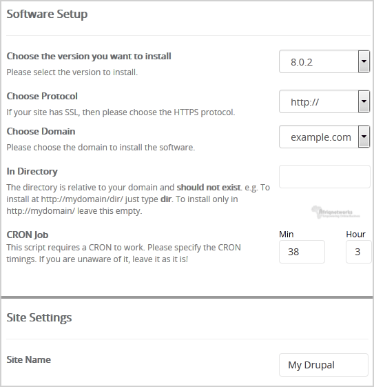 Knowledgebase Categories Backup/Restore 4 Broadband Internet 1 cPanel - Control Panel 24 Databases 11 Dedicated Servers 3 DNS - Nameserver 6 Domain 2 Domain Management 10 Domain Transfer 1 Email 13 FTP 4 Installing a Control Panel 6 Mail Filters & SPAM 8 Mobile 11 New Microwave Upgrade 1 Others 3 Security 10 Softaculous 71 Web Hosting 1 Wordpress 17 Categories Backup/Restore (4) Broadband Internet (1) cPanel - Control Panel (24) Databases (11) Dedicated Servers (3) DNS - Nameserver (6) Domain (2) Domain Management (10) Domain Transfer (1) Email (13) FTP (4) Installing a Control Panel (6) Mail Filters & SPAM (8) Mobile (11) New Microwave Upgrade (1) Others (3) Security (10) Softaculous (71) Web Hosting (1) Wordpress (17) How to Install Drupal via Softaculous in cPanel? 1. Log into your cPanel account. 2. In the "Software" section, click on "Softaculous App Installer" Icon.3. cPanel will redirect you to the Softaculous Panel.4. On the left side of your screen you should locate the "Portal/CMS" category. Click on it and then click on the "Drupal" link that will appear.5. Click on the "Install" button.6. Fill the necessary field under the "Software Setup" field: Choose the version you want to install: Leave this as it is.Choose Protocol: You can leave this as it is.Choose Domain: If you don't have multiple domains, leave this as it is. In Directory: If you want to install this in a directory, for example example.com/directory, enter the directory name. Otherwise, leave this blank to install in your main domain example.com Cronjob: You can leave this as it is. 7. Under the "Site Settings" field:Site Name: Enter the name of your website, such as "my first website".8. Under the "Admin Account" field enter the following information: Admin Username: Your new Drupal username (for security reason do not use the "Administrator" or the "Admin" username. Admin Password: Use a strong password. Admin Email: Your e-mail address. Note: Copy the admin username and password on a notepad because you will need these login details to access the admin area of your Drupal Website.9. Advanced Options: Leave this as it is, unless you want to change the database name or take an automated backup. Please note that taking frequent backups may take a lot of disk space.Finally, scroll down to the end of page and click on the Install Button. Was this answer helpful? Yes No Print this Article Also Read How to Install sNews via Softaculous in cPanel? 1. Log into your cPanel account. 2. In the "Software" section, click on "Softaculous App... How to Install Contao via Softaculous in cPanel? 1. Log into your cPanel account. 2. In the "Software" section, click on "Softaculous App... How to Install Website Baker via Softaculous in cPanel? 1. Log into your cPanel account. 2. In the "Software" section, click on "Softaculous App... How to Install PyroCMS via Softaculous in cPanel? 1. Log into your cPanel account. 2. In the "Software" section, click on "Softaculous App... How to Install Fork via Softaculous in cPanel? 1. Log into your cPanel account. 2. In the "Software" section, click on "Softaculous App... Powered by WHMCompleteSolution Support My Support Tickets Announcements Knowledgebase Downloads Network Status Open Ticket