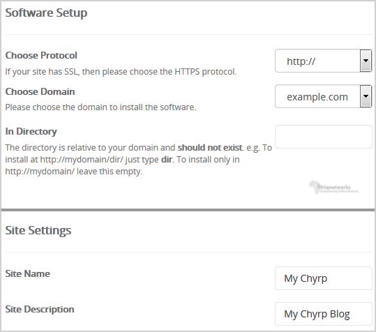 Knowledgebase Categories Backup/Restore 4 Broadband Internet 1 cPanel - Control Panel 24 Databases 11 Dedicated Servers 3 DNS - Nameserver 6 Domain 2 Domain Management 10 Domain Transfer 1 Email 13 FTP 4 Installing a Control Panel 6 Mail Filters & SPAM 8 Mobile 11 New Microwave Upgrade 1 Others 3 Security 10 Softaculous 71 Web Hosting 1 Wordpress 17 Categories Backup/Restore (4) Broadband Internet (1) cPanel - Control Panel (24) Databases (11) Dedicated Servers (3) DNS - Nameserver (6) Domain (2) Domain Management (10) Domain Transfer (1) Email (13) FTP (4) Installing a Control Panel (6) Mail Filters & SPAM (8) Mobile (11) New Microwave Upgrade (1) Others (3) Security (10) Softaculous (71) Web Hosting (1) Wordpress (17) How to Install Chyrp via Softaculous in cPanel? 1. Log into your cPanel account. 2. In the "Software" section, click on "Softaculous App Installer" Icon.3. cPanel will redirect you to the Softaculous Panel.4. On the left side of your screen you should locate the "Blogs" category. Click on it and then click on the "Chyrp" link that will appear.5. Click on the "Install" button.6. Fill the necessary field under the "Software Setup" field:Choose Protocol: You can leave this as it is.Choose Domain: If you don't have multiple domains, leave this as it is.In Directory: If you want to install this in a directory, for example example.com/directory, enter the directory name. Otherwise, leave this blank to install in your main domain example.com7. Under the "Site Settings" field:Site Name: Enter the name of your website, such as "my first website".Site Description: Site Description8. Under the "Admin Account" field enter the following information:Admin Username: Your new Chyrp username (for security reason do not use the "Administrator" or the "Admin" username.)Admin Password: Use a strong password.Admin Email: Your e-mail address.Note: Copy the admin username and password on a notepad because you will need these login details to access the admin area of your Chyrp blog.9. Advanced Options: Leave this as it is, unless you want to change the database name or take an automated backup. Please note that taking frequent backups may take a lot of disk space. Finally, scroll down to the end of page and click on the Install Button. Was this answer helpful? Yes No Print this Article Also Read How to Install LifeType via Softaculous in cPanel? 1. Log into your cPanel account. 2. In the "Software" section, click on "Softaculous App... How to Install OpenBlog via Softaculous in cPanel? 1. Log into your cPanel account. 2. In the "Software and Services" section, click on... How to Install Dotclear via Softaculous in cPanel? 1. Log into your cPanel account. 2. In the "Software" section, click on "Softaculous App... How to Install Nibbleblog via Softaculous in cPanel? 1. Log into your cPanel account. 2. In the "Software" section, click on "Softaculous App... How to Install MovableType via Softaculous in cPanel? 1. Log into your cPanel account. 2. In the "Software" section, click on "Softaculous App... Powered by WHMCompleteSolution Support My Support Tickets Announcements Knowledgebase Downloads Network Status Open Ticket