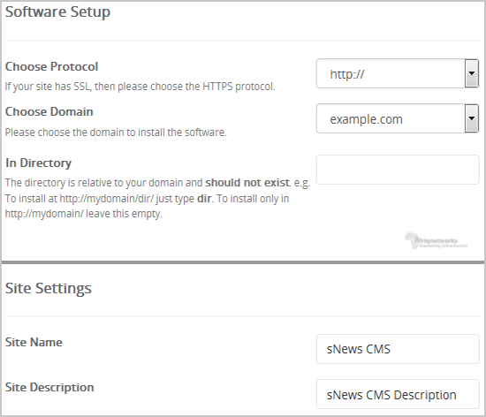 Knowledgebase Categories Backup/Restore 4 Broadband Internet 1 cPanel - Control Panel 24 Databases 11 Dedicated Servers 3 DNS - Nameserver 6 Domain 2 Domain Management 10 Domain Transfer 1 Email 13 FTP 4 Installing a Control Panel 6 Mail Filters & SPAM 8 Mobile 11 New Microwave Upgrade 1 Others 3 Security 10 Softaculous 71 Web Hosting 1 Wordpress 17 Categories Backup/Restore (4) Broadband Internet (1) cPanel - Control Panel (24) Databases (11) Dedicated Servers (3) DNS - Nameserver (6) Domain (2) Domain Management (10) Domain Transfer (1) Email (13) FTP (4) Installing a Control Panel (6) Mail Filters & SPAM (8) Mobile (11) New Microwave Upgrade (1) Others (3) Security (10) Softaculous (71) Web Hosting (1) Wordpress (17) How to Install sNews via Softaculous in cPanel? 1. Log into your cPanel account. 2. In the "Software" section, click on "Softaculous App Installer" Icon.3. cPanel will redirect you to the Softaculous Panel.4. On the left side of your screen you should locate the "Portal/CMS" category. Click on it and then click on the "sNews" link that will appear.5. Click on the "Install" button6. Fill the necessary field under the "Software Setup" field: Choose Protocol: You can leave this as it is.Choose Domain: If you don't have multiple domains, leave this as it is. In Directory: If you want to install this in a directory, for example example.com/directory, enter the directory name. Otherwise, leave this blank to install in your main domain example.com 7. Under "Site Settings" field: Site Name: Enter the name of your website, such as "sNews".Site Description: Site Description. 8. Under the "Admin Account" field enter the following information: Admin Username: Your new sNews username (for security reason do not use the "Administrator" or the "Admin" username.) Admin Password: Use a strong password. Admin Email: Your e-mail address. Note: Copy the admin username and password on a notepad because you will need these login details to access the admin area of your sNews Website. 9. Advanced Options: Leave this as it is, unless you want to change the database name or take an automated backup. Please note that taking frequent backups may take a lot of disk space.Finally, scroll down to the end of page and click on the Install Button. Was this answer helpful? Yes No Print this Article Also Read How to Install Silex via Softaculous in cPanel? 1. Log into your cPanel account. 2. In the "Software" section, click on "Softaculous App... How to Install Quick.CMS via Softaculous in cPanel? 1. Log into your cPanel account. 2. In the "Software" section, click on "Softaculous App... How to Install Composr via Softaculous in cPanel? 1. Log into your cPanel account. 2. In the "Software" section, click on "Softaculous App... How to Install Zikula via Softaculous in cPanel? 1. Log into your cPanel account. 2. In the "Software" section, click on "Softaculous App... How to Install ocPortal via Softaculous in cPanel? 1. Log into your cPanel account. 2. In the "Software" section, click on "Softaculous App... Powered by WHMCompleteSolution Support My Support Tickets Announcements Knowledgebase Downloads Network Status Open Ticket