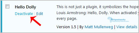 Knowledgebase Categories Backup/Restore 4 Broadband Internet 1 cPanel - Control Panel 24 Databases 11 Dedicated Servers 3 DNS - Nameserver 6 Domain 2 Domain Management 10 Domain Transfer 1 Email 13 FTP 4 Installing a Control Panel 6 Mail Filters & SPAM 8 Mobile 11 New Microwave Upgrade 1 Others 3 Security 10 Softaculous 71 Web Hosting 1 Wordpress 17 Categories Backup/Restore (4) Broadband Internet (1) cPanel - Control Panel (24) Databases (11) Dedicated Servers (3) DNS - Nameserver (6) Domain (2) Domain Management (10) Domain Transfer (1) Email (13) FTP (4) Installing a Control Panel (6) Mail Filters & SPAM (8) Mobile (11) New Microwave Upgrade (1) Others (3) Security (10) Softaculous (71) Web Hosting (1) Wordpress (17) How to Deactivate and Delete a Plugin in WordPress? If your plugin is not in use or you wish to deactivate it, you can do this from the WordPress admin dashboard. You can also delete deactivated plugins.1. Login to your WordPress admin dashboard.2. Under the dashboard menu, hover your mouse over "Plugins" and then click on "Installed Plugins".3. If you want to deactivate the €œHello Dolly€ plugin, for example, click on €œDeactivate€, which appears at bottom of the €œHello Dolly€ text.How to Delete a Plugin in WordPress?Once a plugin is deactivated, the delete option will appear. Go to the €œInstalled Plugins€ list and click on the €œDelete€ link which shows at the bottom of the deactivated plugin€™s name. It will display a confirmation. Press €œOK€ and the plugin will be removed. Was this answer helpful? Yes No Print this Article Also Read How to start writing your first blog post in WordPress? 1. Login to your WordPress admin dashboard.2. Under the dashboard menu, hover your mouse on Posts... How to Forcefully Update a Plugin in WordPress? If your WordPress plugin is not working properly or you want to re-install it even when it is... How to Manually Install a Theme on WordPress Using the Admin Dashboard? You downloaded a new theme from trusted website and want to install it on your WordPress site... How to Change the Password of a Wordpress Account? If you are logged in into your wordpress admin account, you can easily change your password.1.... How to remove a category in WordPress? If you want to remove WordPress category then follow this instruction:1. Login to your WordPress... Powered by WHMCompleteSolution Support My Support Tickets Announcements Knowledgebase Downloads Network Status Open Ticket
