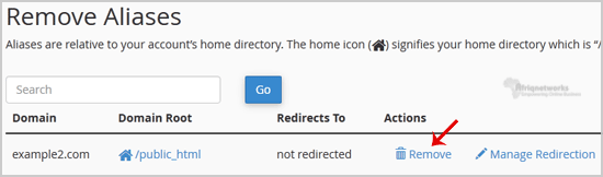 Knowledgebase Categories Backup/Restore 4 Broadband Internet 1 cPanel - Control Panel 24 Databases 11 Dedicated Servers 3 DNS - Nameserver 6 Domain 2 Domain Management 10 Domain Transfer 1 Email 13 FTP 4 Installing a Control Panel 6 Mail Filters & SPAM 8 Mobile 11 New Microwave Upgrade 1 Others 3 Security 10 Softaculous 71 Web Hosting 1 Wordpress 17 Categories Backup/Restore (4) Broadband Internet (1) cPanel - Control Panel (24) Databases (11) Dedicated Servers (3) DNS - Nameserver (6) Domain (2) Domain Management (10) Domain Transfer (1) Email (13) FTP (4) Installing a Control Panel (6) Mail Filters & SPAM (8) Mobile (11) New Microwave Upgrade (1) Others (3) Security (10) Softaculous (71) Web Hosting (1) Wordpress (17) How to Remove Parked Domain name in cPanel? 1. Log into your cPanel account.2. In the "Domains" section, click on "Parked Domains" Icon. 3. Under "Remove Aliases", locate the parked domain name and click on the "Remove" link.4. For confirmation you will need to click on the "Remove Alias" button once more.You should see a success message that your Parked/Alias Domain is removed. Was this answer helpful? Yes No Print this Article Also Read How to Remove a Subdomain in cPanel? 1. Log into your cPanel account.2. In the "Domains" section, click on "Subdomains" Icon. 3.... How to Create Addon Domains? Before adding an Addon Domain name you need to point your addon domain name server to your main... How to Create a Subdomain in cPanel? 1. Log into your cPanel account.2. In the "Domains" section, click on "Subdomains" Icon. 3. Under... How to Redirect subdomain to an external url 1. Log into your cPanel account.2. In the "Domains" section, click on "Subdomains" Icon. 3. Under... How to Redirect an Add-on Domain? You can redirect your add-on domain to another domain.1. Log into your cPanel account.2. In the... Powered by WHMCompleteSolution Support My Support Tickets Announcements Knowledgebase Downloads Network Status Open Ticket