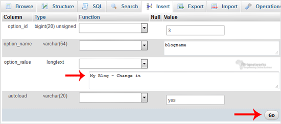 Knowledgebase Categories Backup/Restore 4 Broadband Internet 1 cPanel - Control Panel 24 Databases 11 Dedicated Servers 3 DNS - Nameserver 6 Domain 2 Domain Management 10 Domain Transfer 1 Email 13 FTP 4 Installing a Control Panel 6 Mail Filters & SPAM 8 Mobile 11 New Microwave Upgrade 1 Others 3 Security 10 Softaculous 71 Web Hosting 1 Wordpress 17 Categories Backup/Restore (4) Broadband Internet (1) cPanel - Control Panel (24) Databases (11) Dedicated Servers (3) DNS - Nameserver (6) Domain (2) Domain Management (10) Domain Transfer (1) Email (13) FTP (4) Installing a Control Panel (6) Mail Filters & SPAM (8) Mobile (11) New Microwave Upgrade (1) Others (3) Security (10) Softaculous (71) Web Hosting (1) Wordpress (17) How to edit database table via phpMyAdmin in cPanel? 1. Log into your cPanel account.2. In the "Databases" section, click on "phpMyAdmin" Icon. 3. In left side-bar, Click on the expand button to expand database like "example".4. Under your cPanel username, you can see list of all databases. Select appropriate database which you want to edit and it will be expanded.5. Select appropriate table you want to edit like If you want to edit table of Wordpress and change blog name from phpMyAdmin then select "wp-options".6. Click on "Edit" option on 3rd raw.7. Edit "My Blog" to different text and then click on "Go" button.By this method you can change value of SQL data of any software without accessing administrator area like If you can't change theme from administrator area then you can use this method to change value of SQL and even you can change password of any account. Was this answer helpful? Yes No Print this Article Also Read How to rename a database in cPanel? 1. Log into your cPanel account.2. In the "Databases" section, click on "MySQL Databases"... How to Create a Database Username in cPanel? 1. Log into your cPanel account.2. In the "Databases" section, click on "MySQL Databases"... How to add a user to a database and add privileges? 1. Log into your cPanel account.2. In the "Databases" section, click on "MySQL Databases"... How to export database table via phpMyAdmin in cPanel? 1. Log into your cPanel account.2. In the "Databases" section, click on "phpMyAdmin" Icon. 3. In... How to delete database table via phpMyAdmin in cPanel? 1. Log into your cPanel account.2. In the "Databases" section, click on "phpMyAdmin" Icon. 3. In... Powered by WHMCompleteSolution Support My Support Tickets Announcements Knowledgebase Downloads Network Status Open Ticket