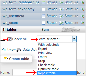 Knowledgebase Categories Backup/Restore 4 Broadband Internet 1 cPanel - Control Panel 24 Databases 11 Dedicated Servers 3 DNS - Nameserver 6 Domain 2 Domain Management 10 Domain Transfer 1 Email 13 FTP 4 Installing a Control Panel 6 Mail Filters & SPAM 8 Mobile 11 New Microwave Upgrade 1 Others 3 Security 10 Softaculous 71 Web Hosting 1 Wordpress 17 Categories Backup/Restore (4) Broadband Internet (1) cPanel - Control Panel (24) Databases (11) Dedicated Servers (3) DNS - Nameserver (6) Domain (2) Domain Management (10) Domain Transfer (1) Email (13) FTP (4) Installing a Control Panel (6) Mail Filters & SPAM (8) Mobile (11) New Microwave Upgrade (1) Others (3) Security (10) Softaculous (71) Web Hosting (1) Wordpress (17) How to Repair database via phpMyAdmin in cPanel? 1. Log into your cPanel account.2. In the "Databases" section, click on "phpMyAdmin" Icon. 3. In left side-bar, Click on the expand button to expand database like "example".4. Under your cPanel username, you can see list of all databases. Select appropriate database which you want to repair.5. Scroll down and mark "Check All" then click on the Drop-down option and select "Repair table".If table successfully repaired then it will show a "Ok" message otherwise it will show some error on few tables like "Error unknown engine" related errors. Was this answer helpful? Yes No Print this Article Also Read How to create a database in cPanel? 1. Log into your cPanel account.2. In the "Databases" section, click on "MySQL Databases"... How to delete a database in cPanel? 1. Log into your cPanel account.2. In the "Databases" section, click on "MySQL Databases"... How to add a user to a database and add privileges? 1. Log into your cPanel account.2. In the "Databases" section, click on "MySQL Databases"... How to Create a Database Username in cPanel? 1. Log into your cPanel account.2. In the "Databases" section, click on "MySQL Databases"... How to delete database table via phpMyAdmin in cPanel? 1. Log into your cPanel account.2. In the "Databases" section, click on "phpMyAdmin" Icon. 3. In... Powered by WHMCompleteSolution Support My Support Tickets Announcements Knowledgebase Downloads Network Status Open Ticket