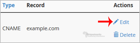 Knowledgebase Categories Backup/Restore 4 Broadband Internet 1 cPanel - Control Panel 24 Databases 11 Dedicated Servers 3 DNS - Nameserver 6 Domain 2 Domain Management 10 Domain Transfer 1 Email 13 FTP 4 Installing a Control Panel 6 Mail Filters & SPAM 8 Mobile 11 New Microwave Upgrade 1 Others 3 Security 10 Softaculous 71 Web Hosting 1 Wordpress 17 Categories Backup/Restore (4) Broadband Internet (1) cPanel - Control Panel (24) Databases (11) Dedicated Servers (3) DNS - Nameserver (6) Domain (2) Domain Management (10) Domain Transfer (1) Email (13) FTP (4) Installing a Control Panel (6) Mail Filters & SPAM (8) Mobile (11) New Microwave Upgrade (1) Others (3) Security (10) Softaculous (71) Web Hosting (1) Wordpress (17) How to edit or remove CNAME Record in cPanel using the DNS Zone Editor? You can edit or remove CNAME Record from cPanel using the cPanel DNS Zone Editor which allows you to manage, remove or modify DNS records.1. Log into your cPanel account. (eg: www.example.com/cPanel )2. In the "Domains" section, click on the "Zone Editor" Icon. Under "Domains", you can see many options below the "Actions" text. 3. Click on "Manage" and the DNS records will be loaded on page.4. Locate CNAME Record you wish to edit or remove. Should you wish to edit a CNAME record, click the €œEdit€ option, modify the details and then click on €œSave Record€. Removing a record can be done with the €œDelete€ option.Note: It may take anywhere from 12 to 24 hours for the changes to take effect worldwide. Was this answer helpful? Yes No Print this Article Also Read How to Edit or Delete Cronjob via cPanel? How to Edit Cronjob?1. Log into your cPanel account.2. In the "Advanced" section, click on "Cron... How to Change cPanel Style/Theme? Switching over to another cPanel theme with a different style is easy and there are two ways to... How to Edit file in the cPanel File Manager? 1. Log into your cPanel account.2. In the "Files" section, click on "File Manger" Icon. 3.... How to update your cPanel Contact Information or receive a notification on reaching quota limit? If you want to receive notification on reaching your disk quota, bandwidth usage limit, reaching... How to create a new folder or files in the cPanel File Manager? 1. Log into your cPanel account.2. In the "Files" section, click on the "File Manger"... Powered by WHMCompleteSolution Support My Support Tickets Announcements Knowledgebase Downloads Network Status Open Ticket